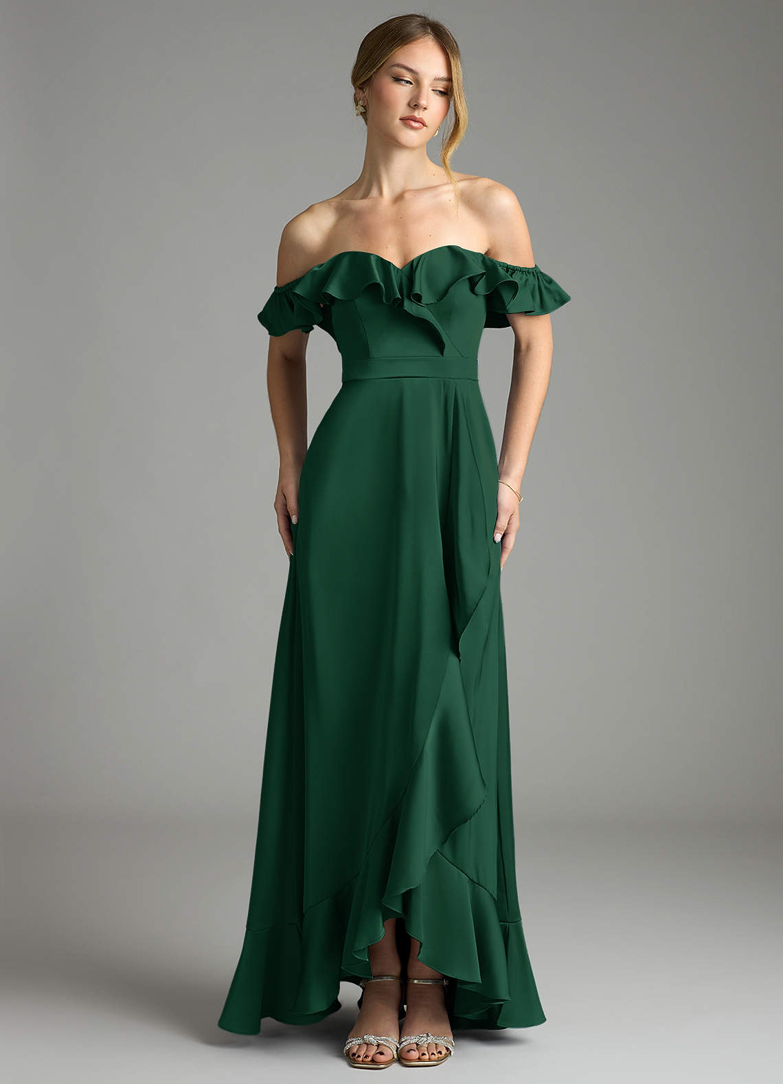 Vestido de Verde Oscuro de Satén Elástico de Corte en A Convertible con Vestidos sin tirantes