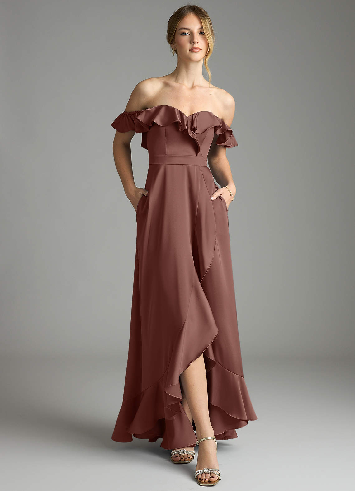 Vestido de Expresado de Satén Elástico de Corte en A Convertible con Vestidos sin tirantes