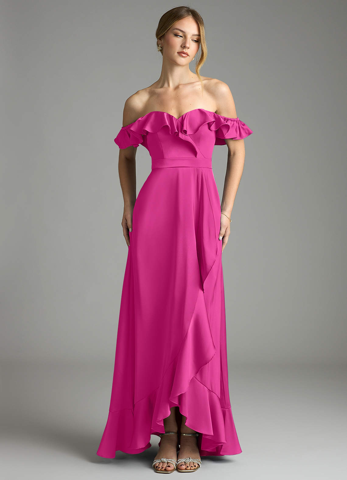 Vestido de Fucsia de Satén Elástico de Corte en A Convertible con Vestidos sin tirantes