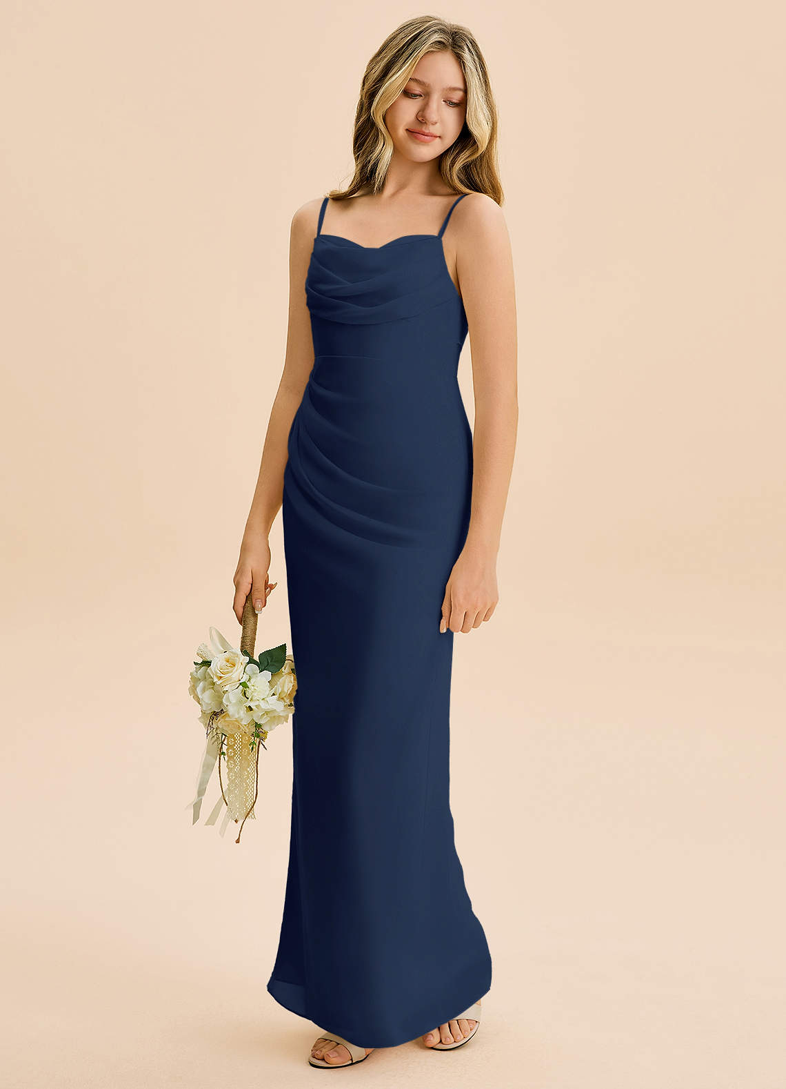 Vestido de Azul Marino Oscuro de Gasa de Corte Recto con Plisado
