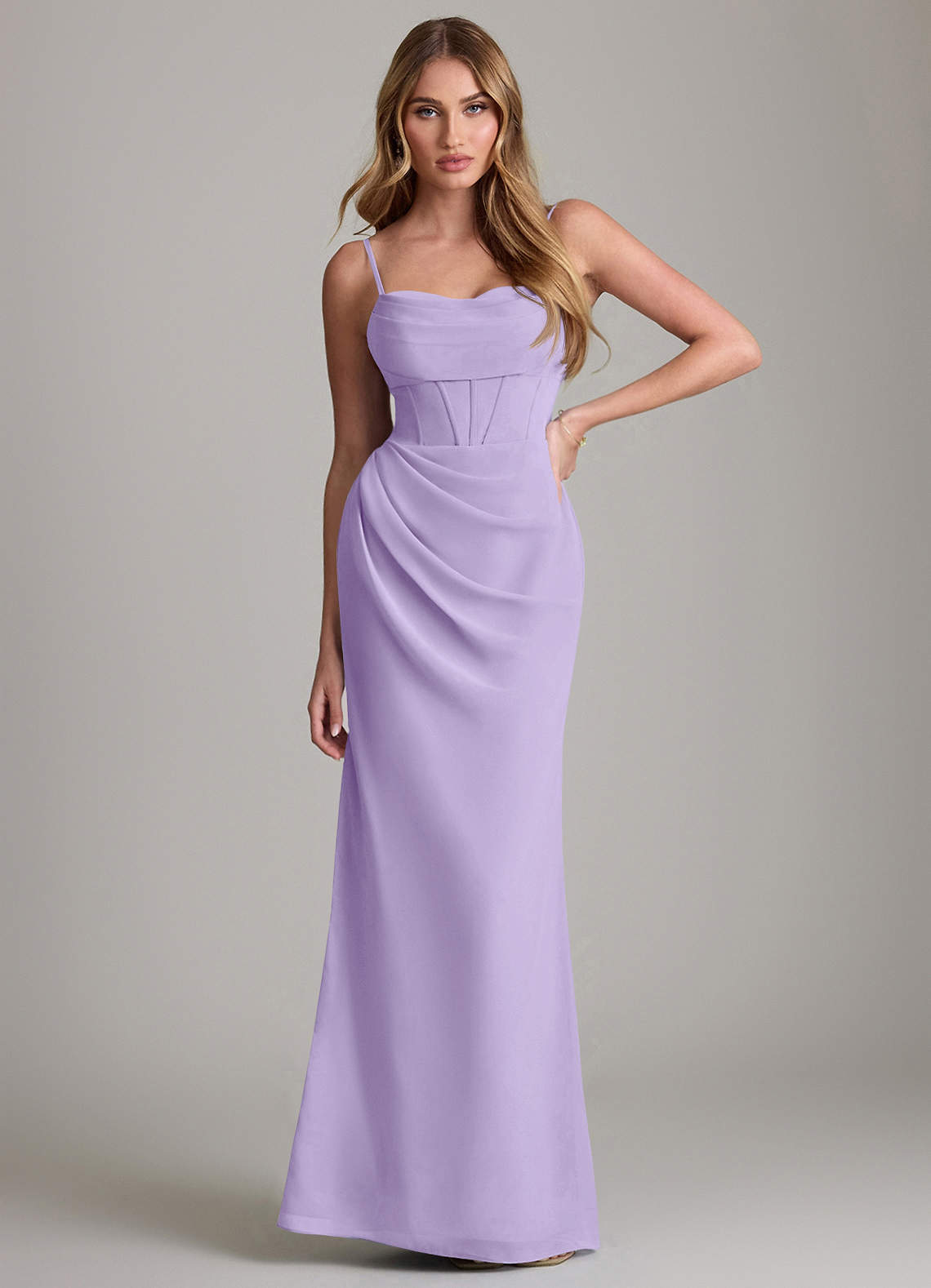 Vestido de Lila de Gasa de Corte Recto con Plisado