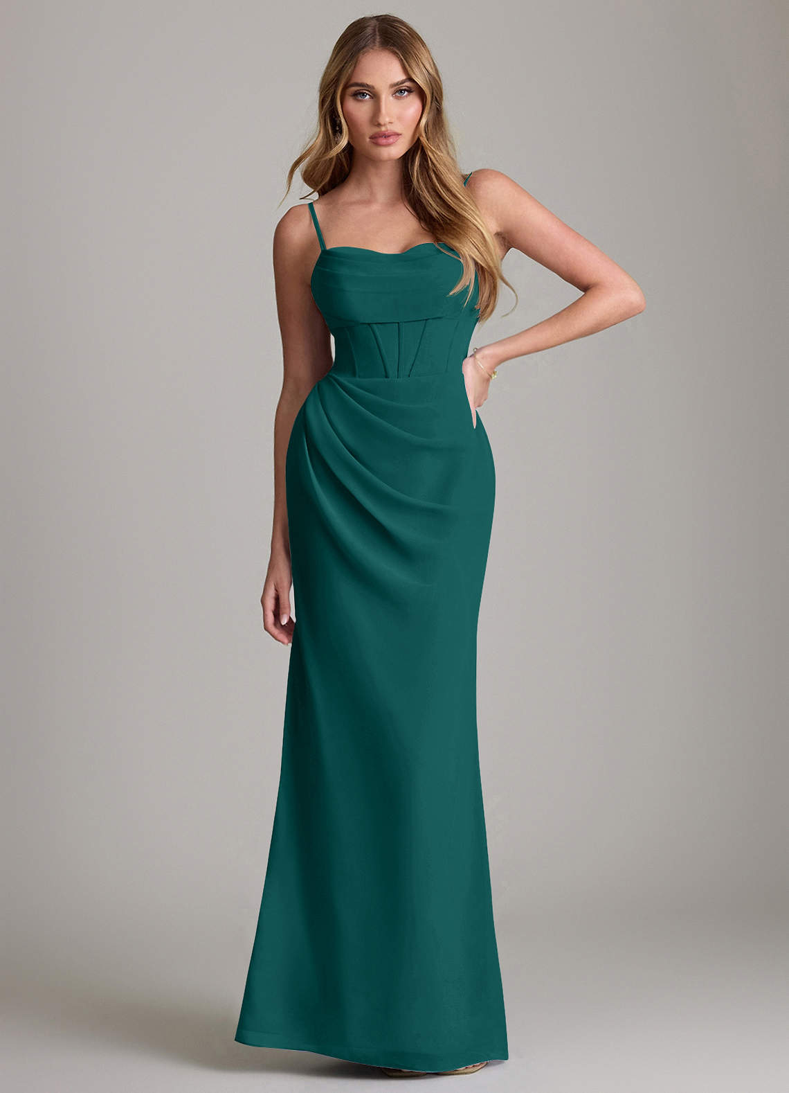 Vestido de Pavo Real de Gasa de Corte Recto con Plisado