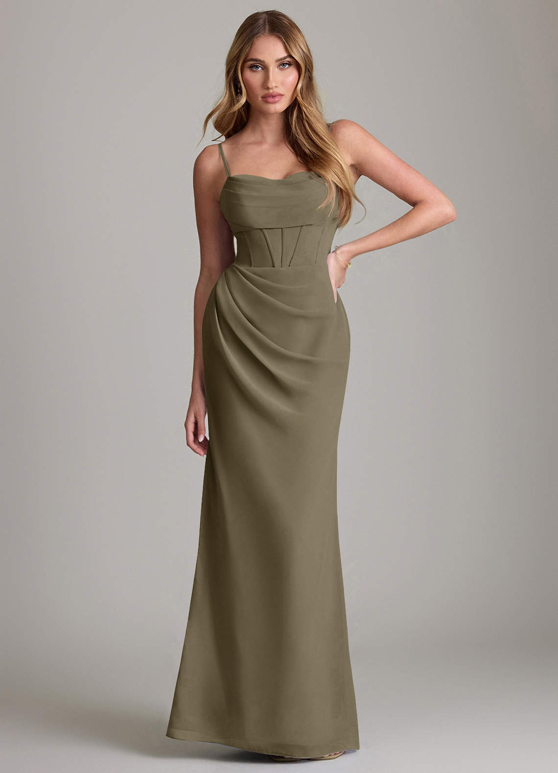 Vestido de Verde Sauce de Gasa de Corte Recto con Plisado