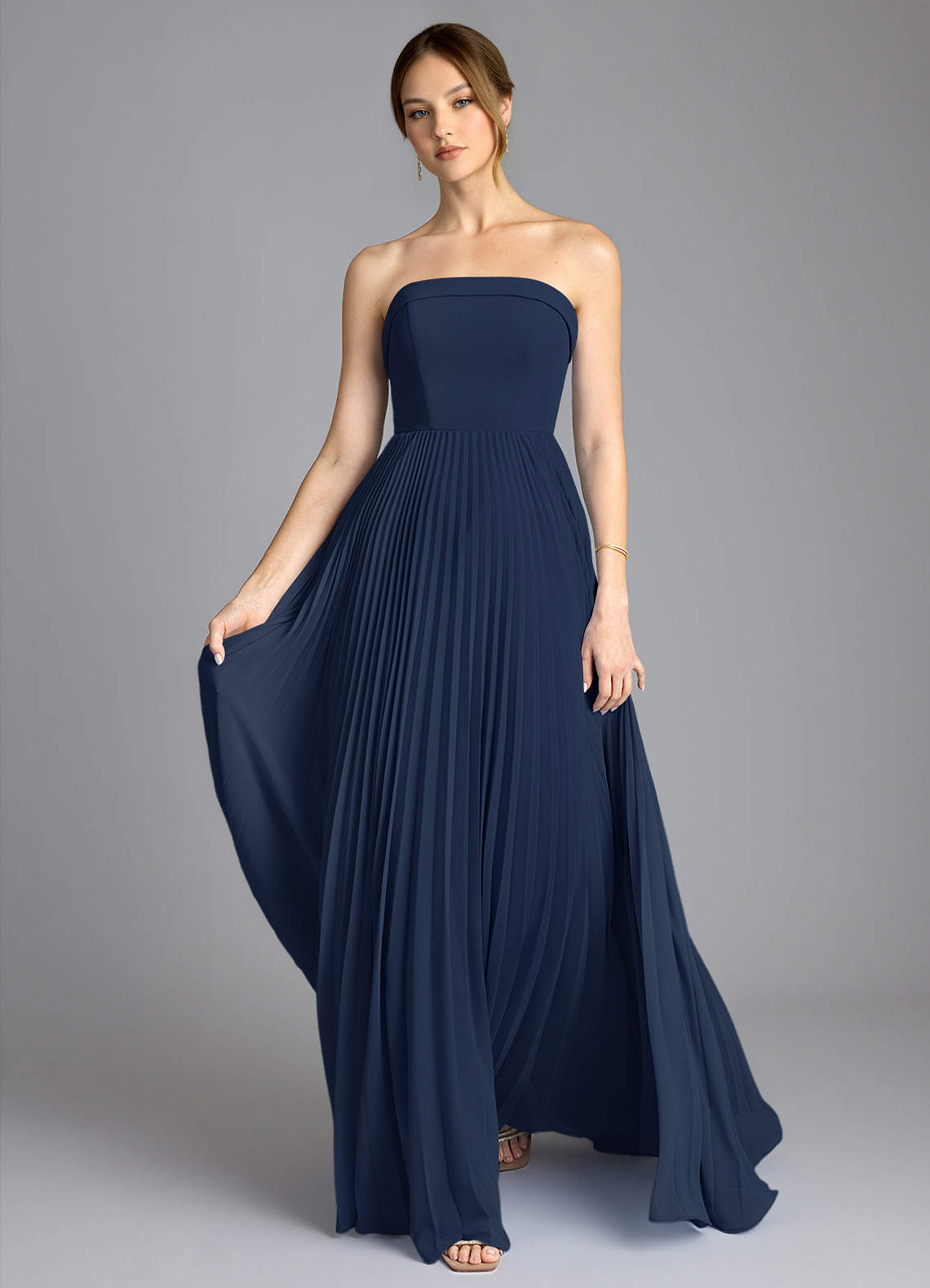 Vestido de Azul Marino Oscuro de Gasa de Corte en A con Sin tirantes