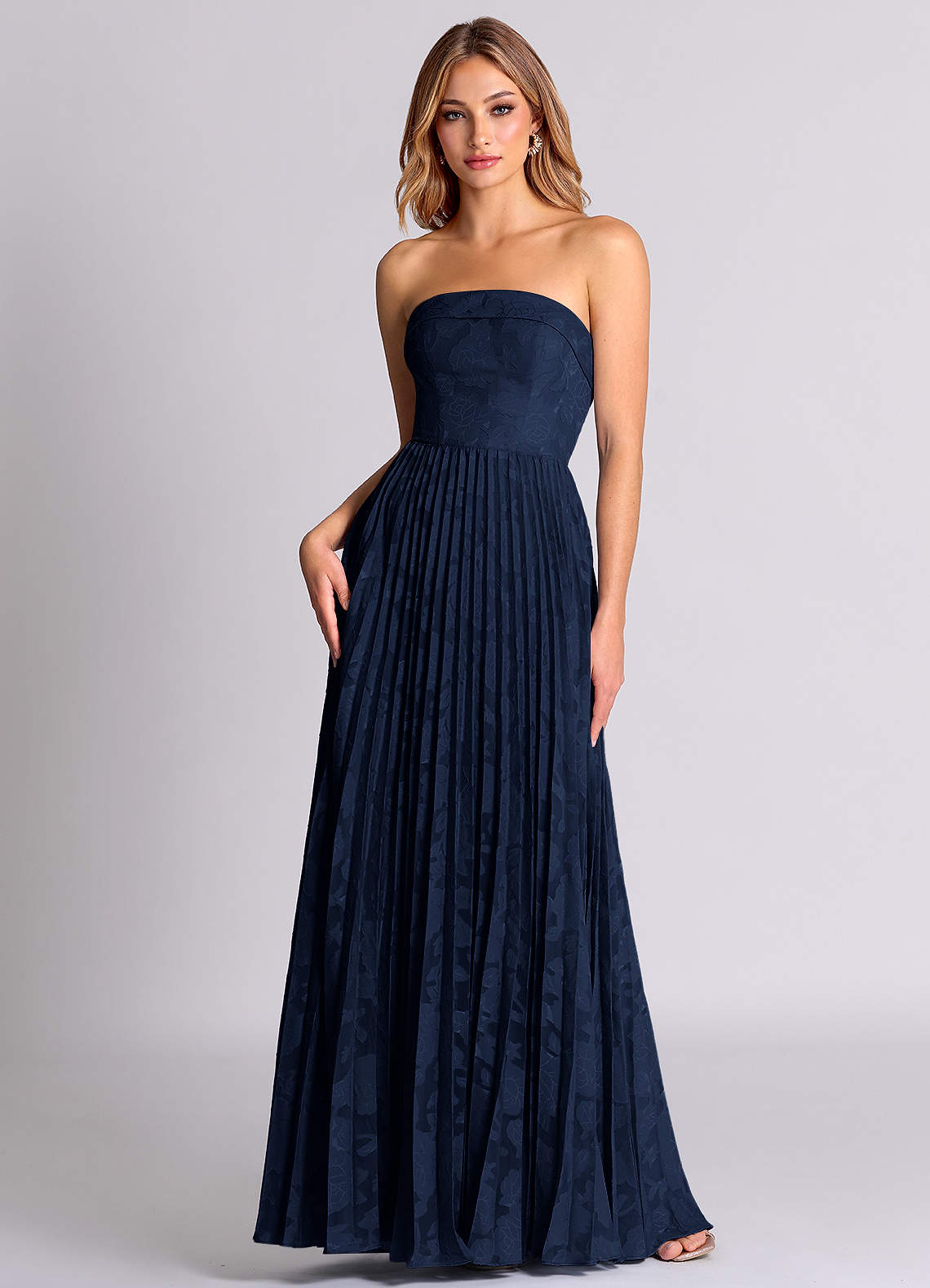 Vestido de Azul Marino Oscuro de Devorado Floral de Corte en A Convertible con Sin tirantes