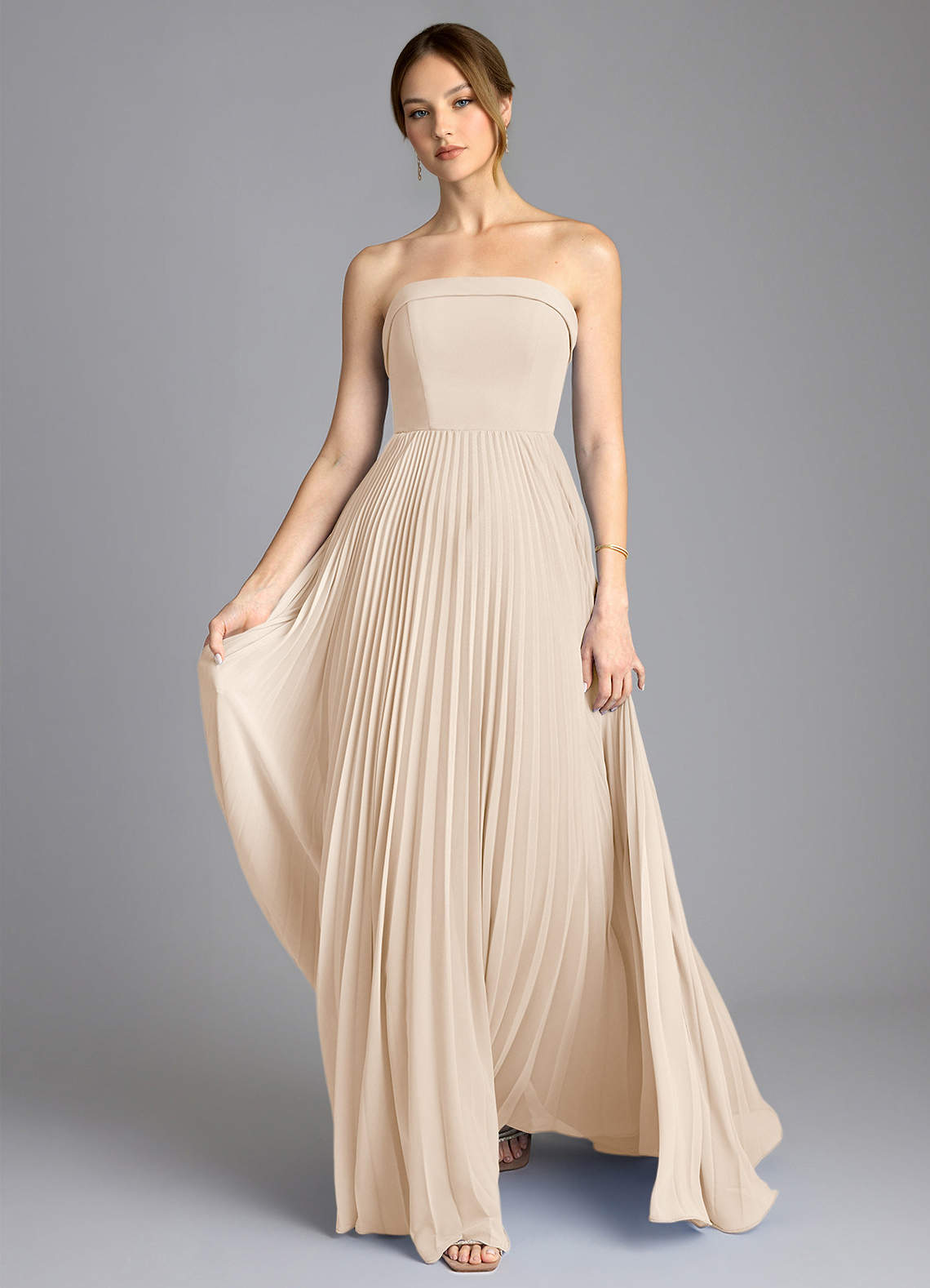 Vestido de Alabastro Blanco de Gasa de Corte en A con Sin tirantes