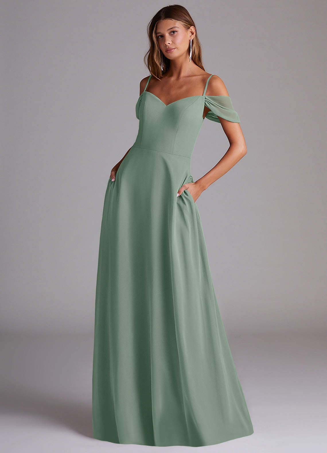 Vestido de Salvia Plateada de Gasa de Corte en A Convertible con Vestidos sin tirantes