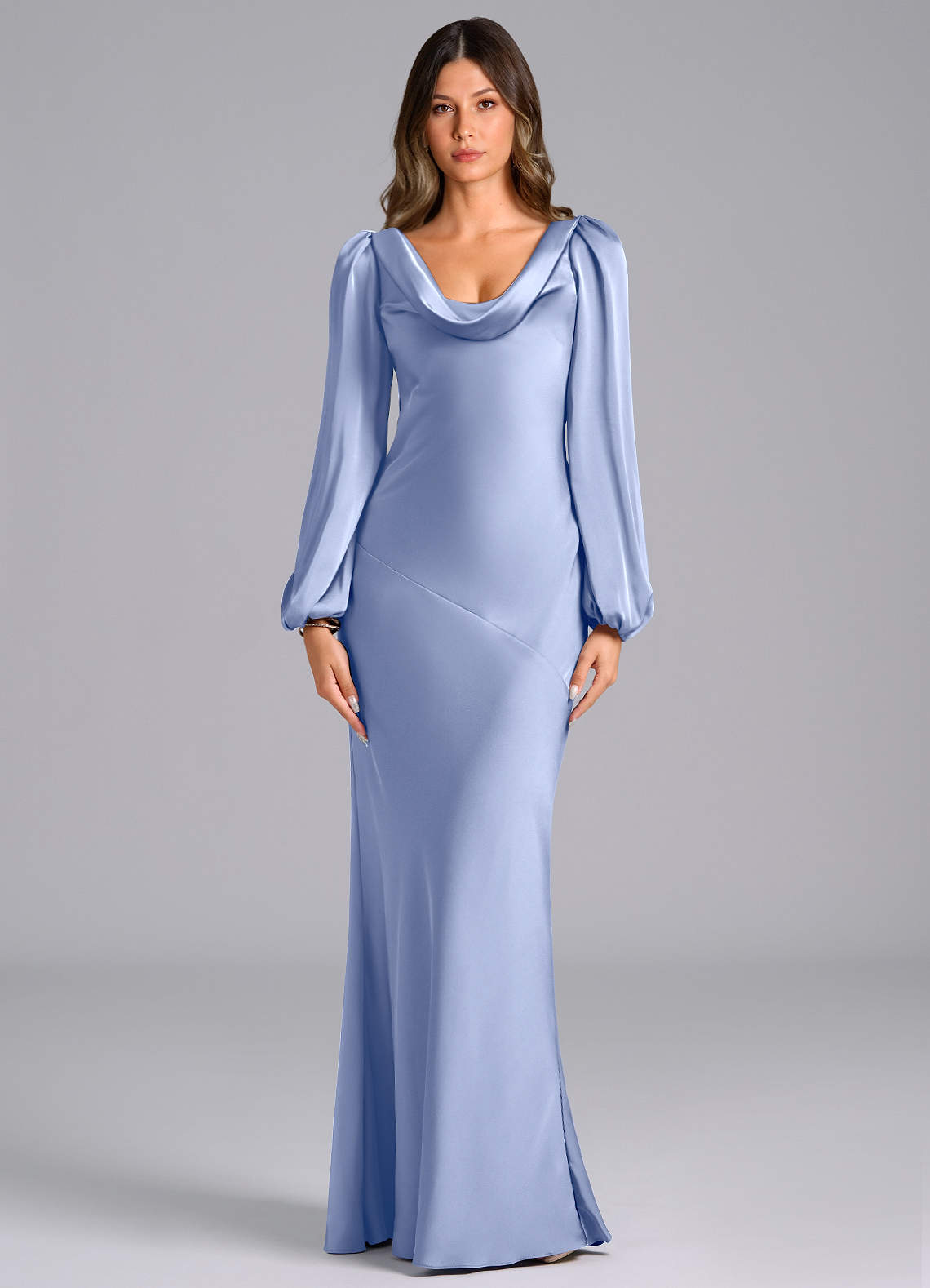 Vestido de Hielo de Satén Elástico de Corte Sirena con Manga larga