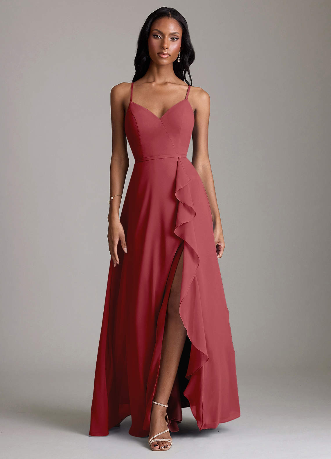Vestido de Granada de Gasa de Corte en A con Cuello en V fruncido