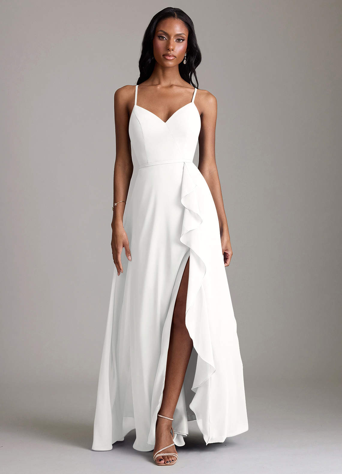 Vestido de Blanco de Gasa de Corte en A con Cuello en V fruncido
