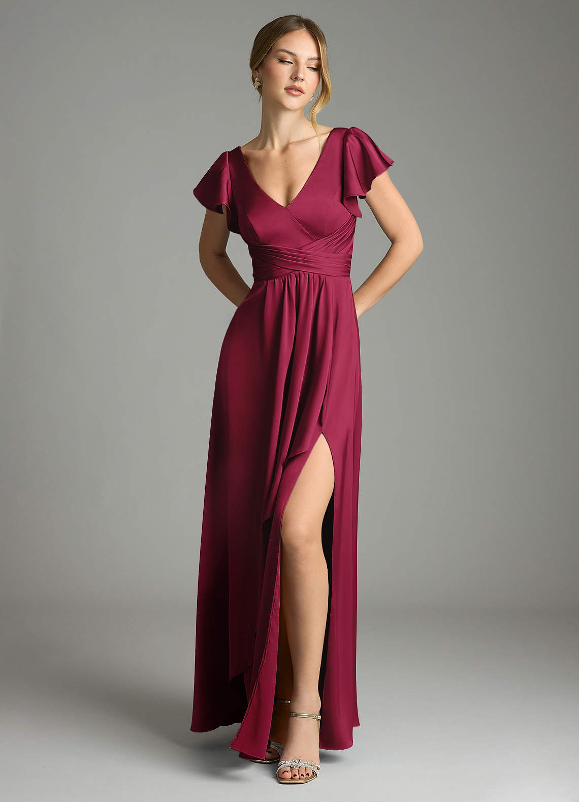 Vestido de Borgoña de Satén Elástico de Corte en A