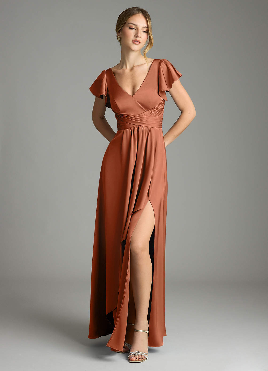 Vestido de Rosa De Cedro de Satén Elástico de Corte en A