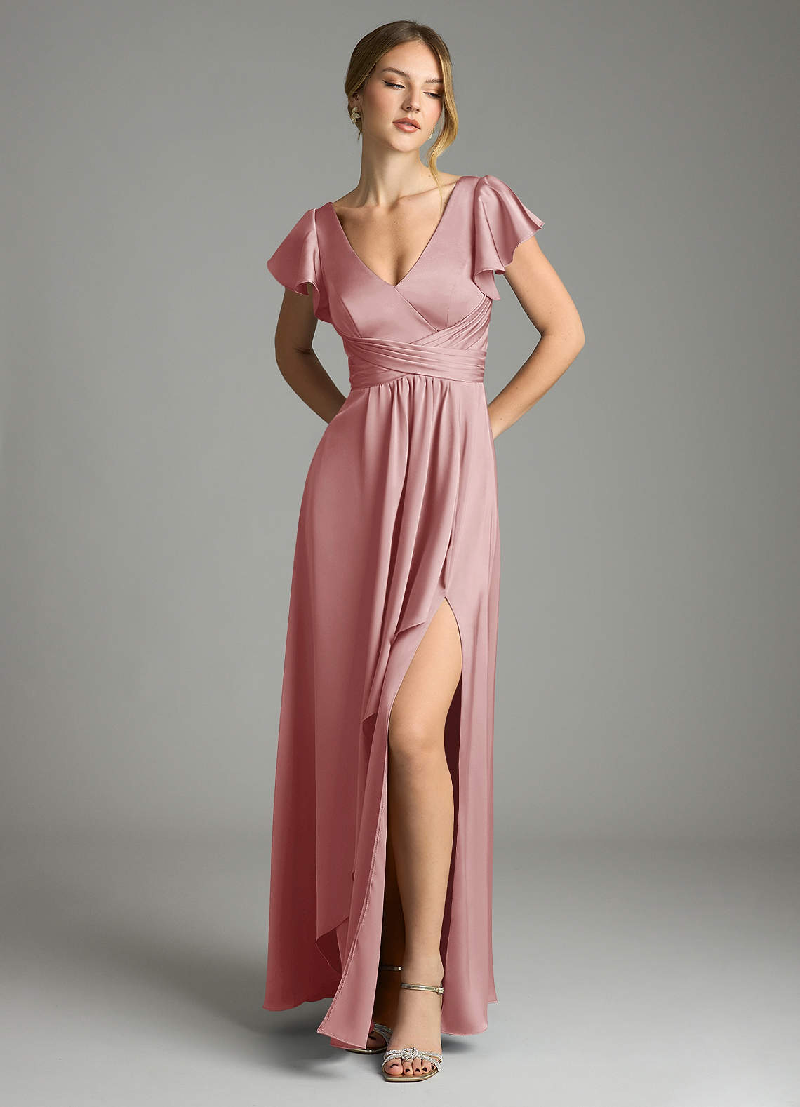 Vestido de Rosa Polvorienta de Satén Elástico de Corte en A