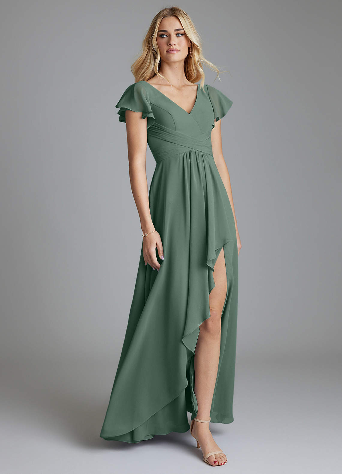 Vestido de Eucalipto de Gasa de Corte en A