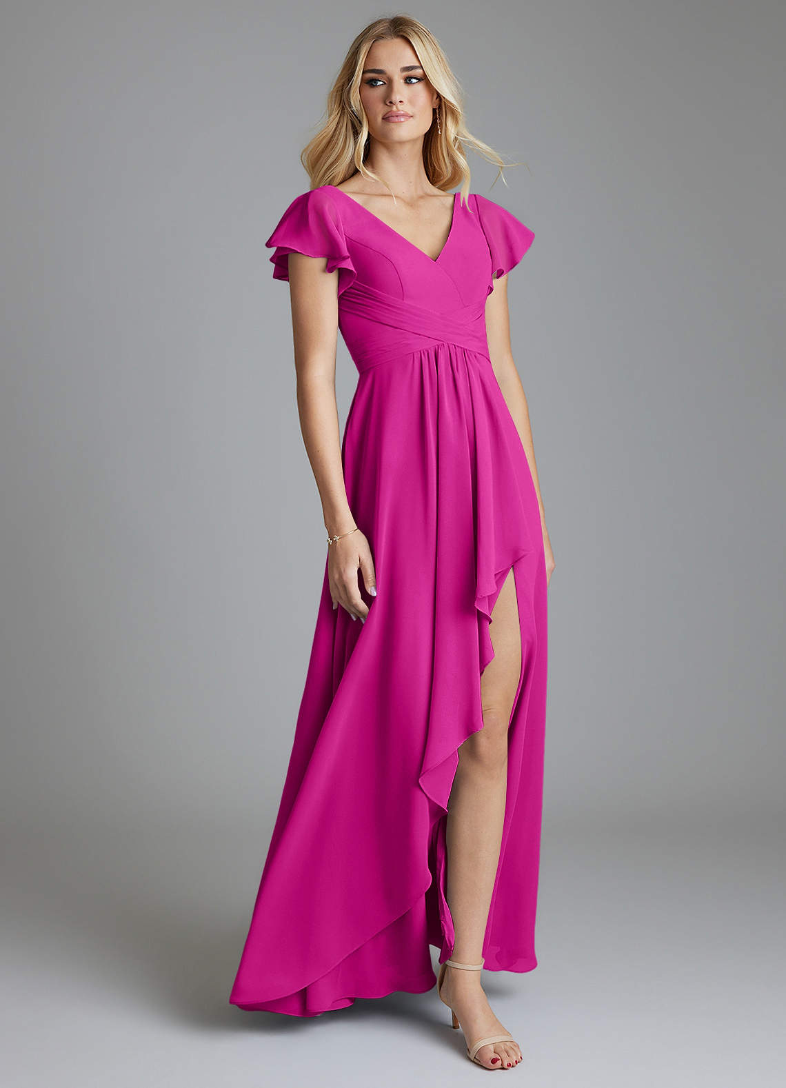 Vestido de Fucsia de Gasa de Corte en A