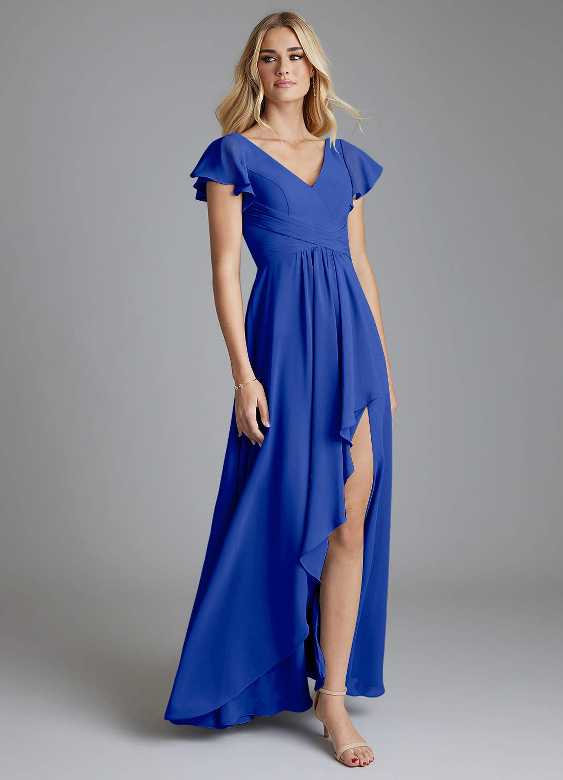 Vestido de Azul Real de Gasa de Corte en A