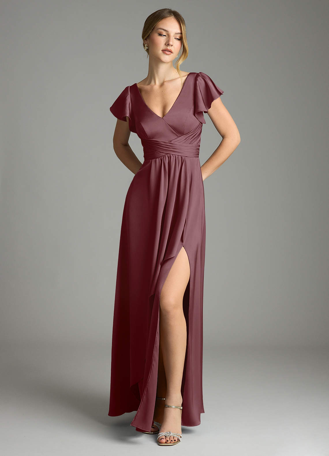Vestido de Sangrado de Satén Elástico de Corte en A