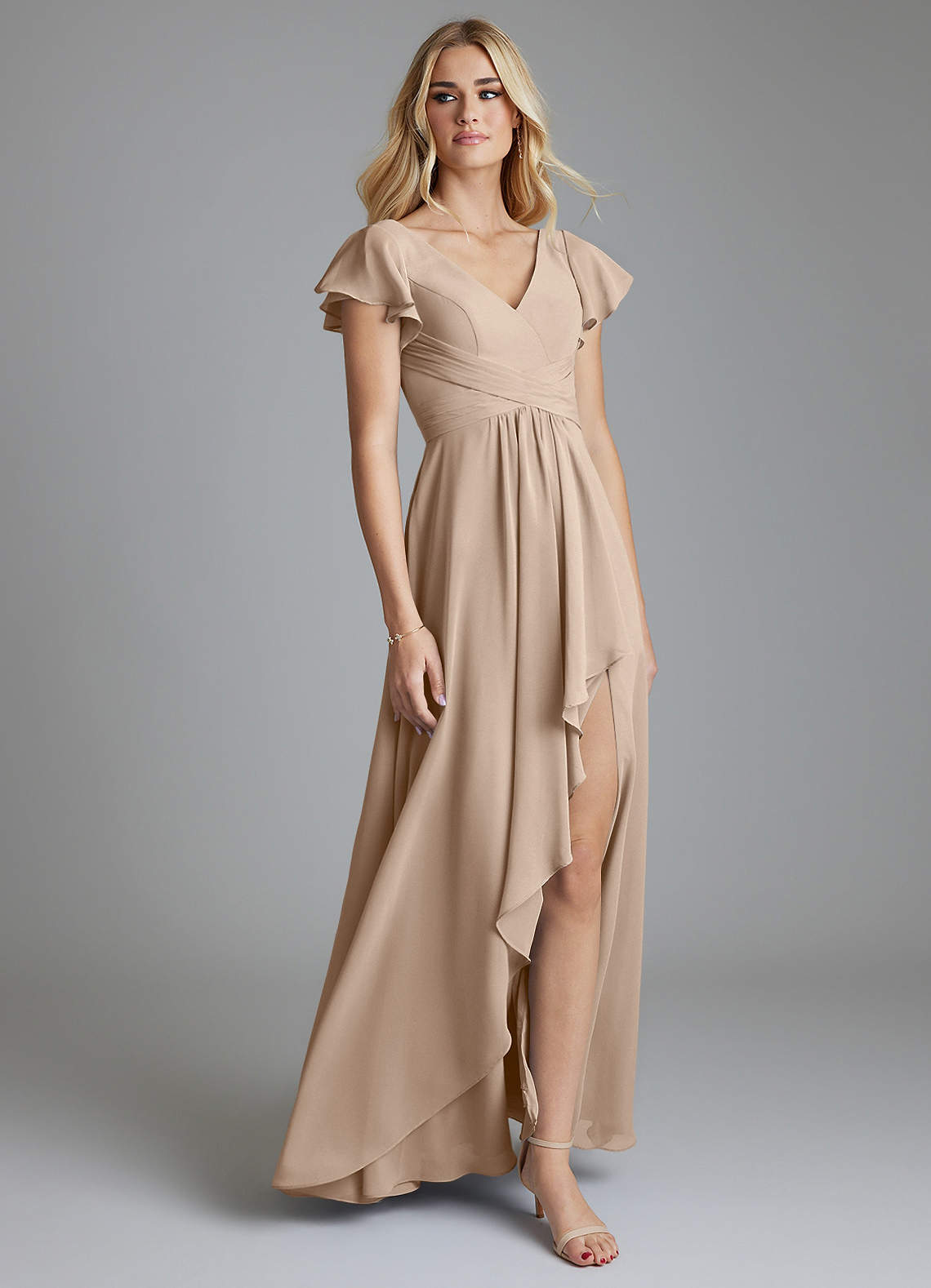 Vestido de Gris Pardo de Gasa de Corte en A