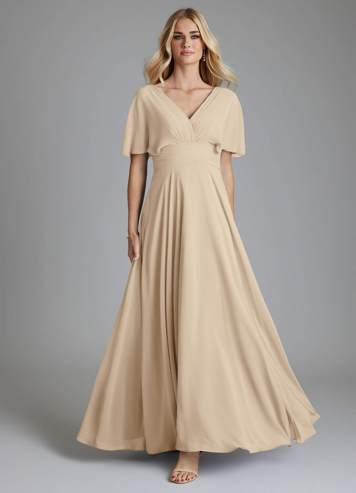 Vestido de Champán de Gasa de Corte en A con Cuello en V plisado