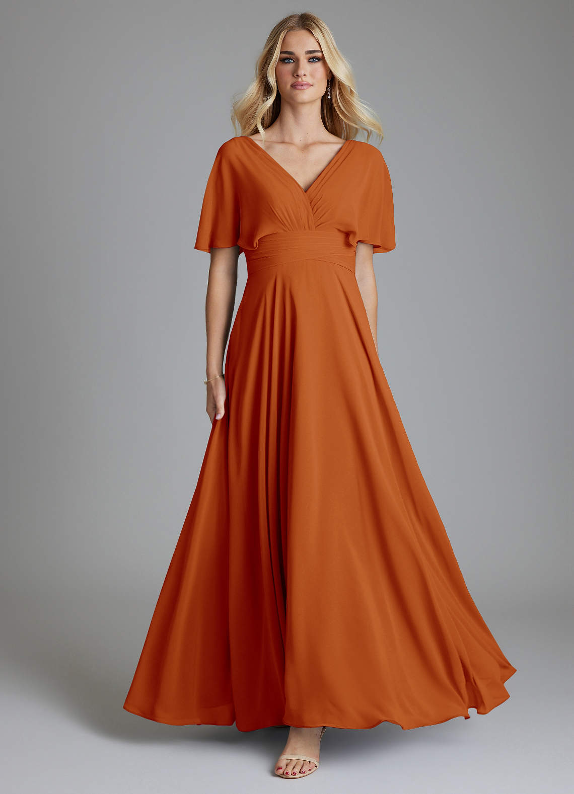 Vestido de Pimenton de Gasa de Corte en A con Cuello en V plisado
