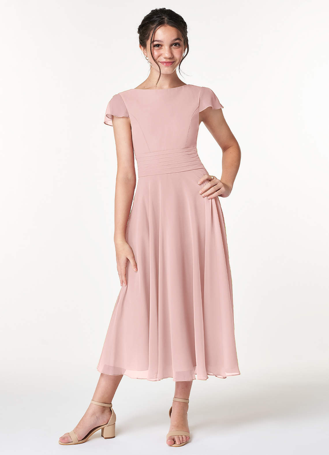 Vestido de Rosa Empolvado de Gasa de Corte en A con Lazo