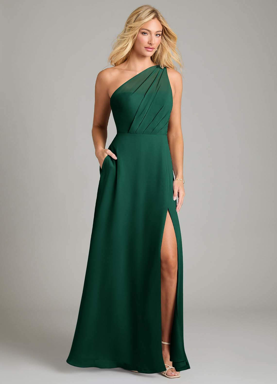 Vestido de Esmeralda de Gasa de Corte en A con Hombro unilateral