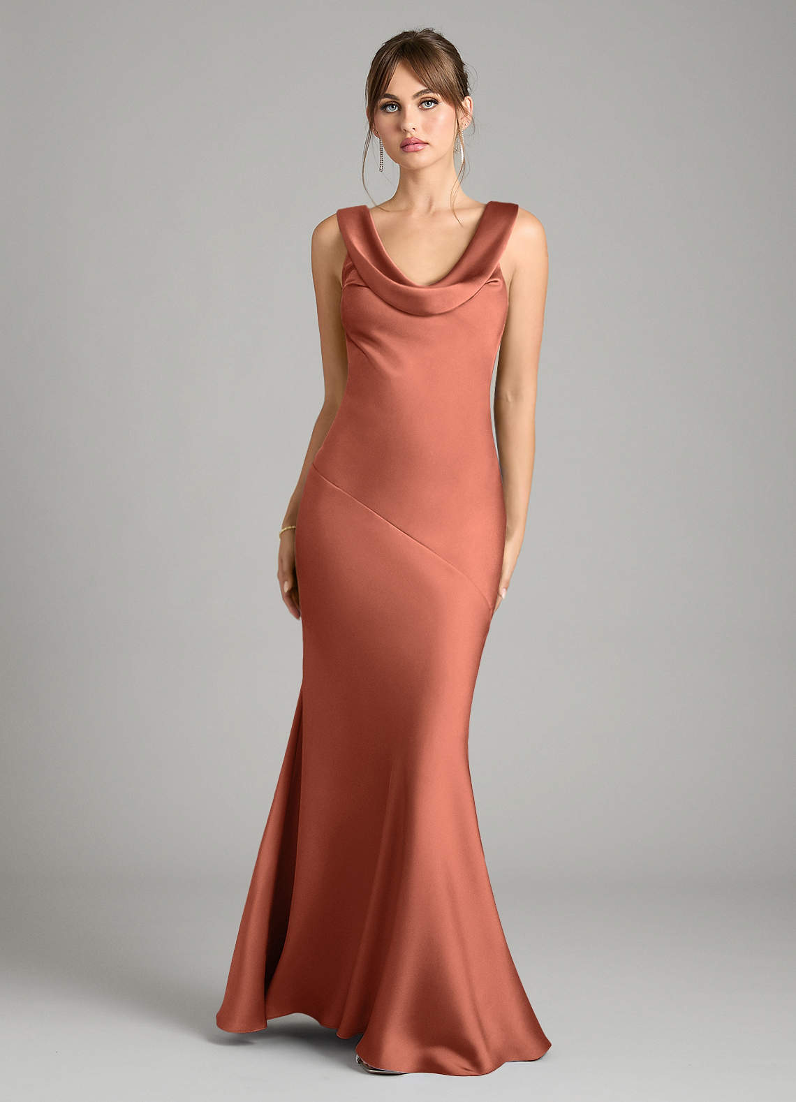 Vestido de Arcilla de Satén Elástico de Corte Sirena