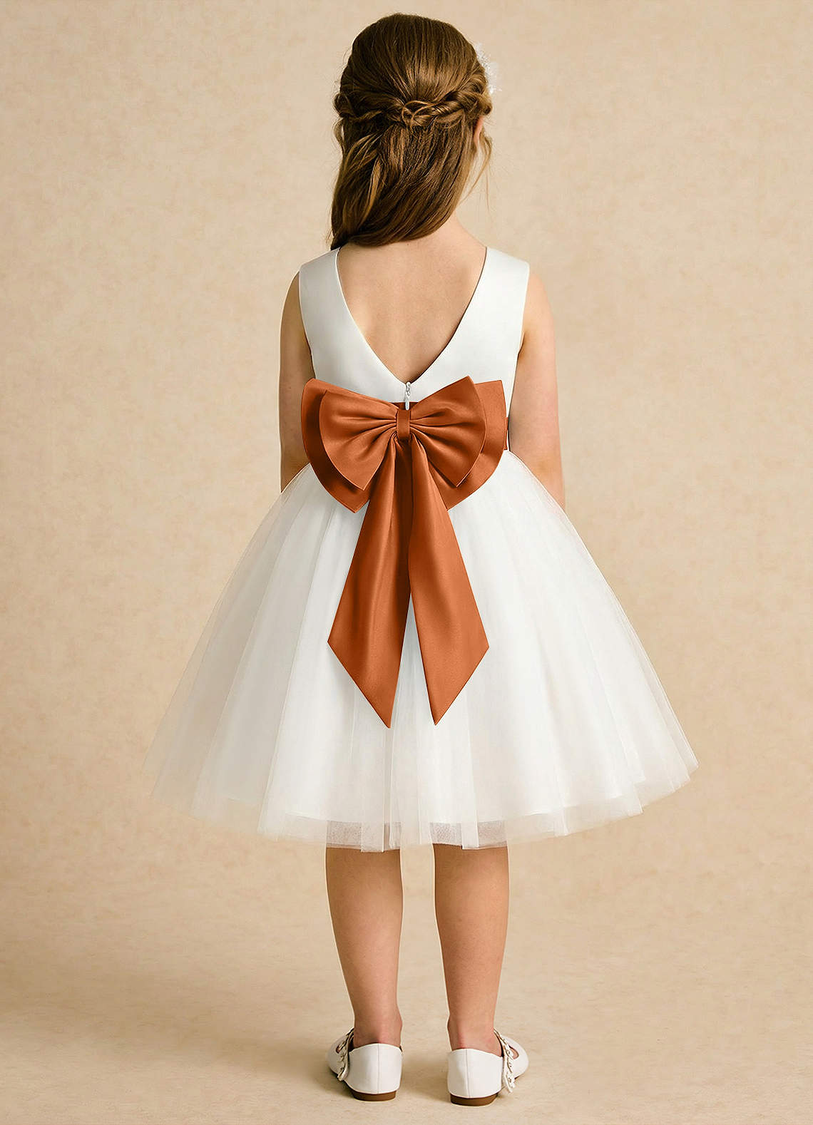 Vestido de Marfil Cobre de Tul de Corte en A con Plisado