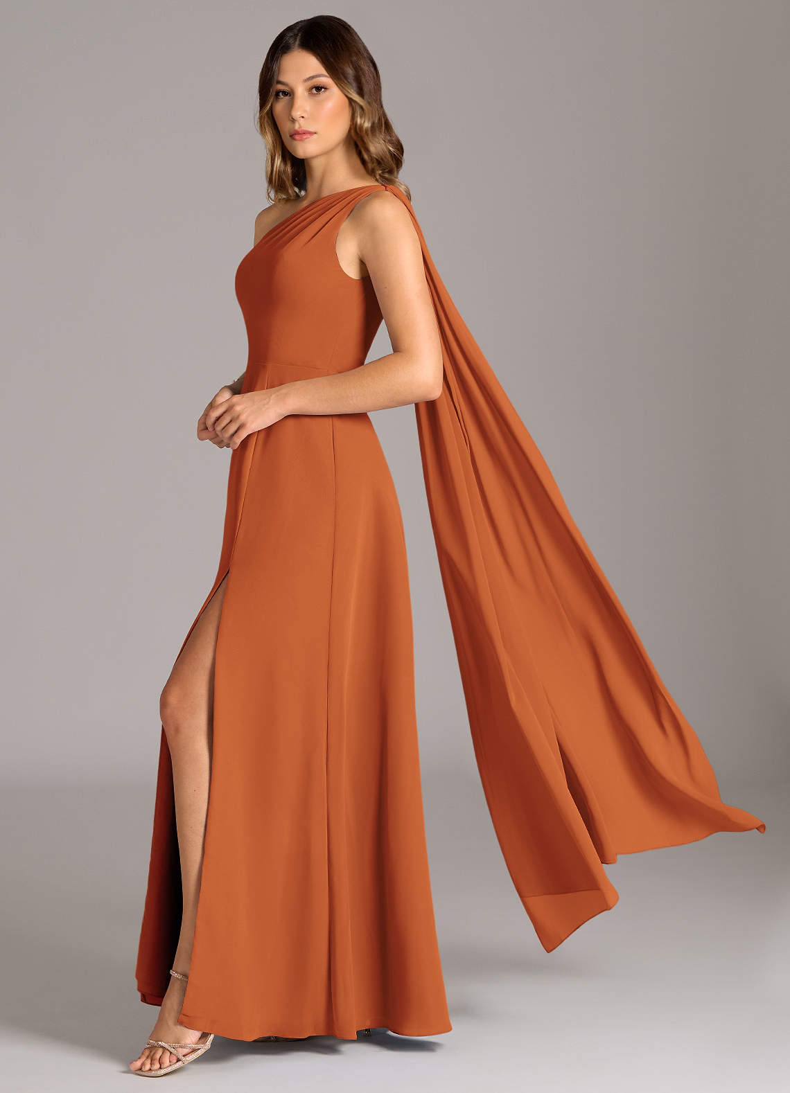 Vestido de Canela de Gasa de Corte en A con Hombro unilateral