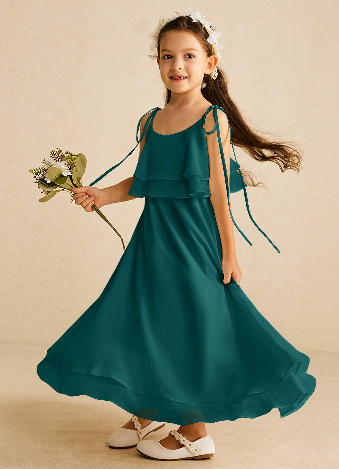 Vestido de Ivory de Gasa de Corte en A con Tirante Espagueti