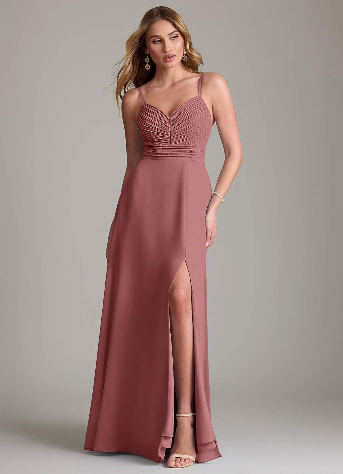 Vestido de Amatista de Gasa de Corte en A con Plisado