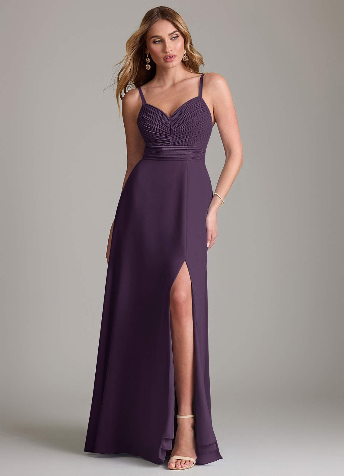 Vestido de Ciruela de Gasa de Corte en A con Plisado