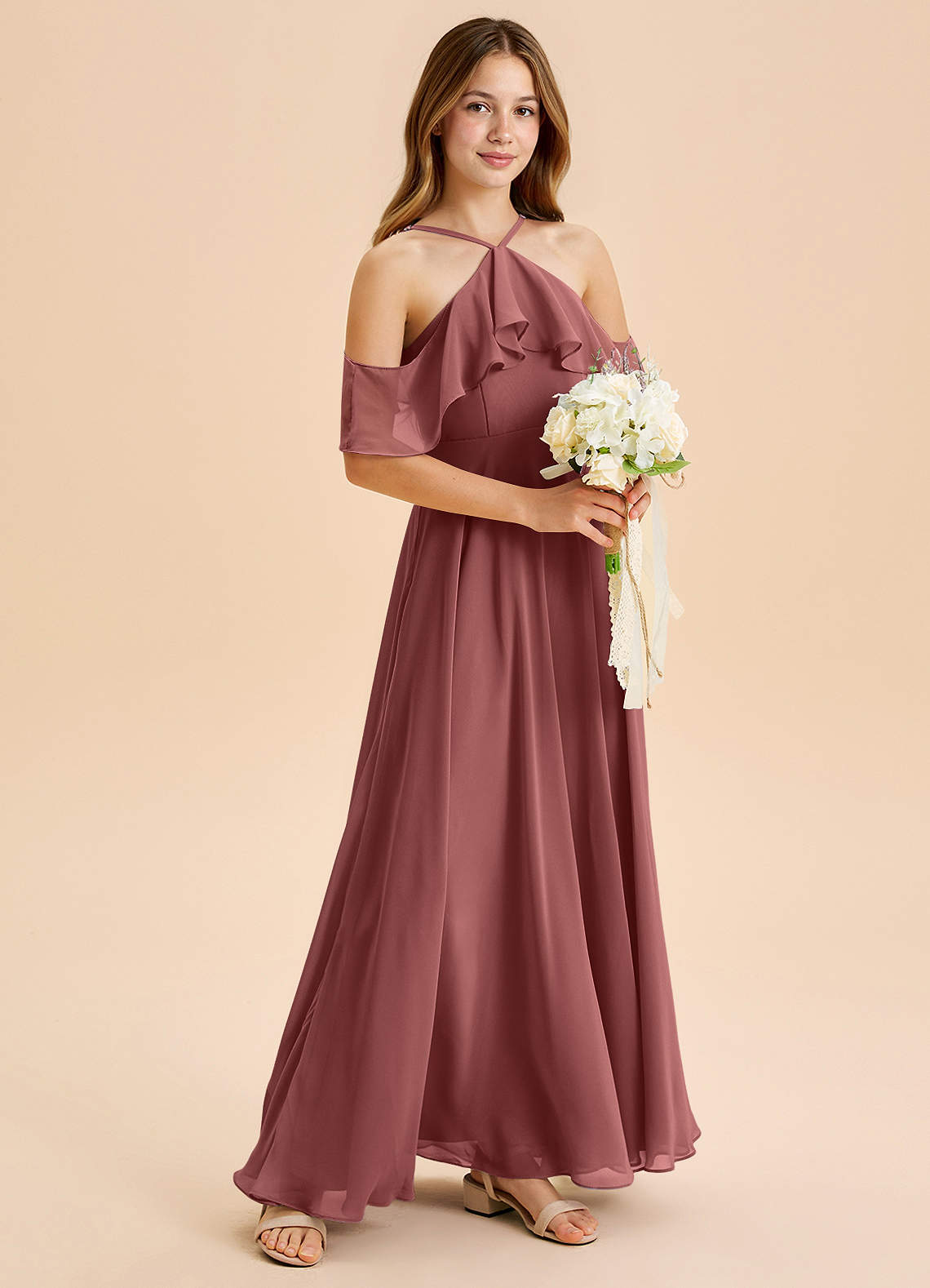 Vestido de Amatista de Gasa de Corte en A con Vestidos sin tirantes