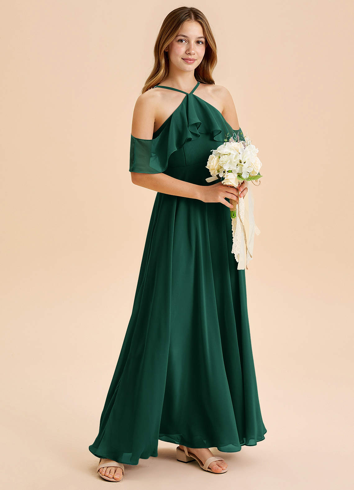 Vestido de Esmeralda de Gasa de Corte en A con Vestidos sin tirantes