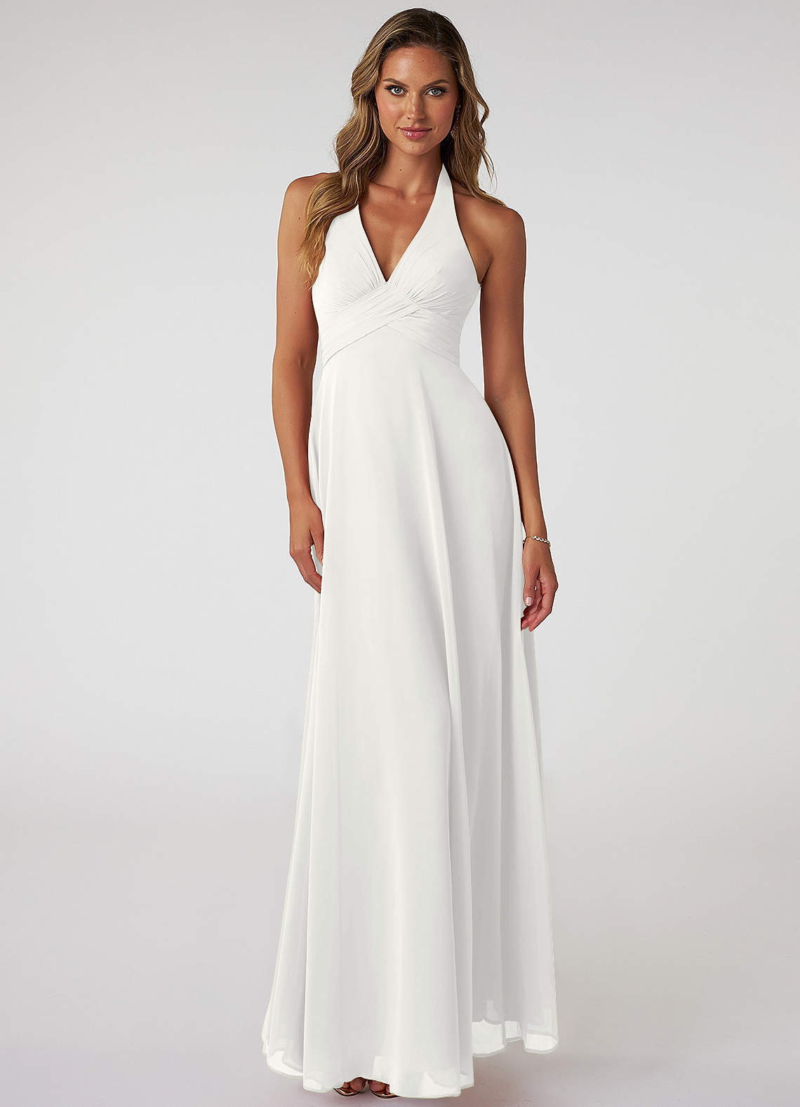Vestido de Blanco de Gasa de Corte en A con Cuello en V plisado