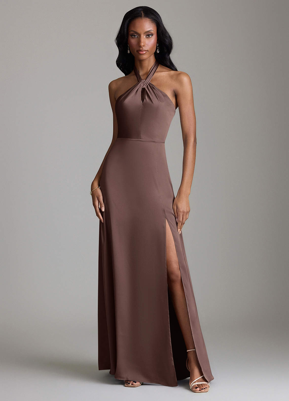 Vestido de Ganache de Satén Elástico de Corte en A con Corte Lateral