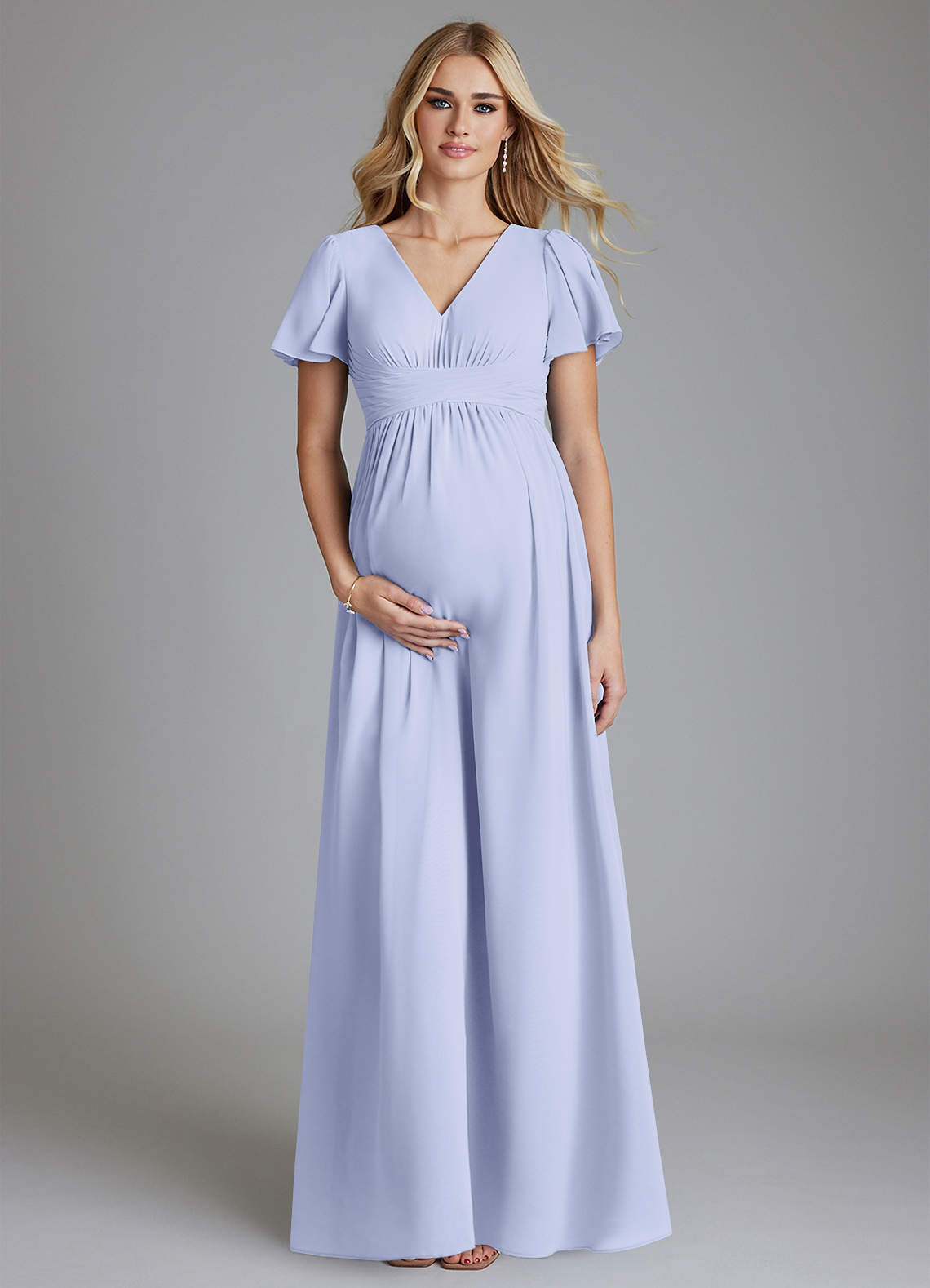 Vestido de Corte en A Cuello en V fruncido Hasta el suelo Gasa Lavanda