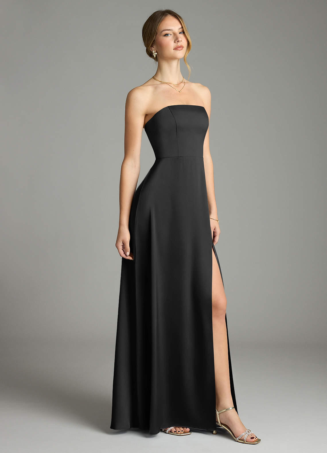 Vestido de Negro de Satén Elástico de Corte en A Convertible con Sin tirantes