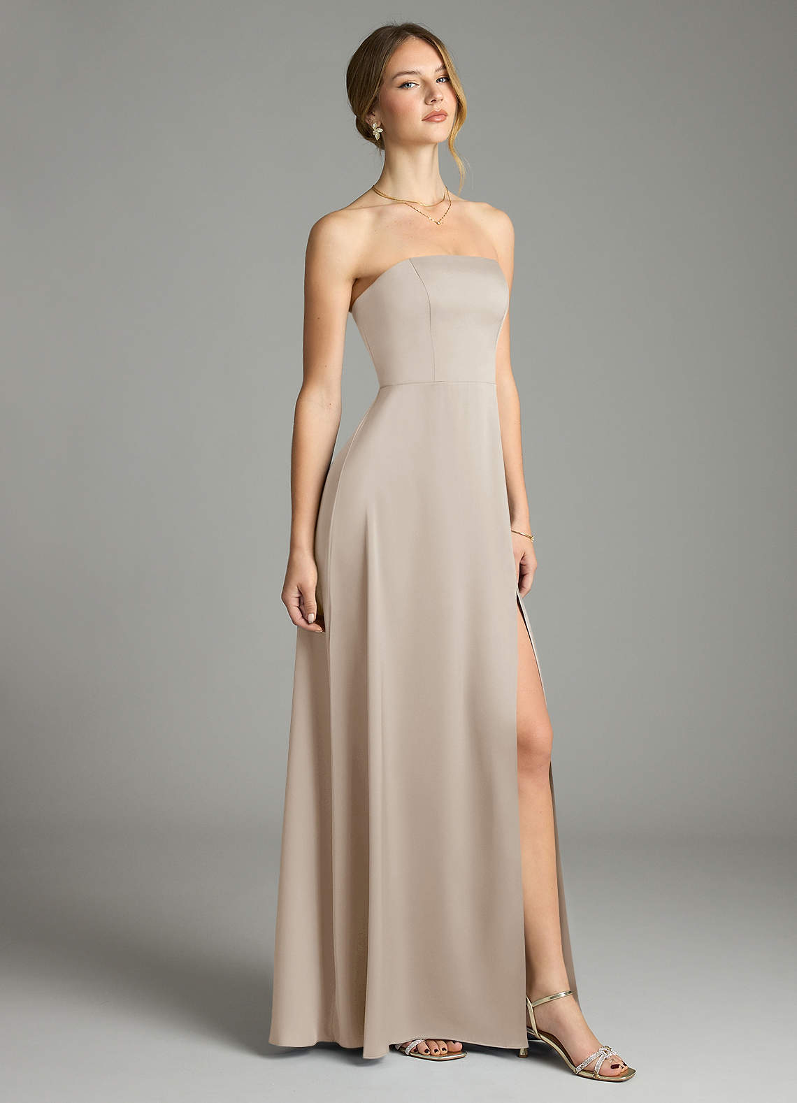 Vestido de Escarcha de Satén Elástico de Corte en A Convertible con Sin tirantes