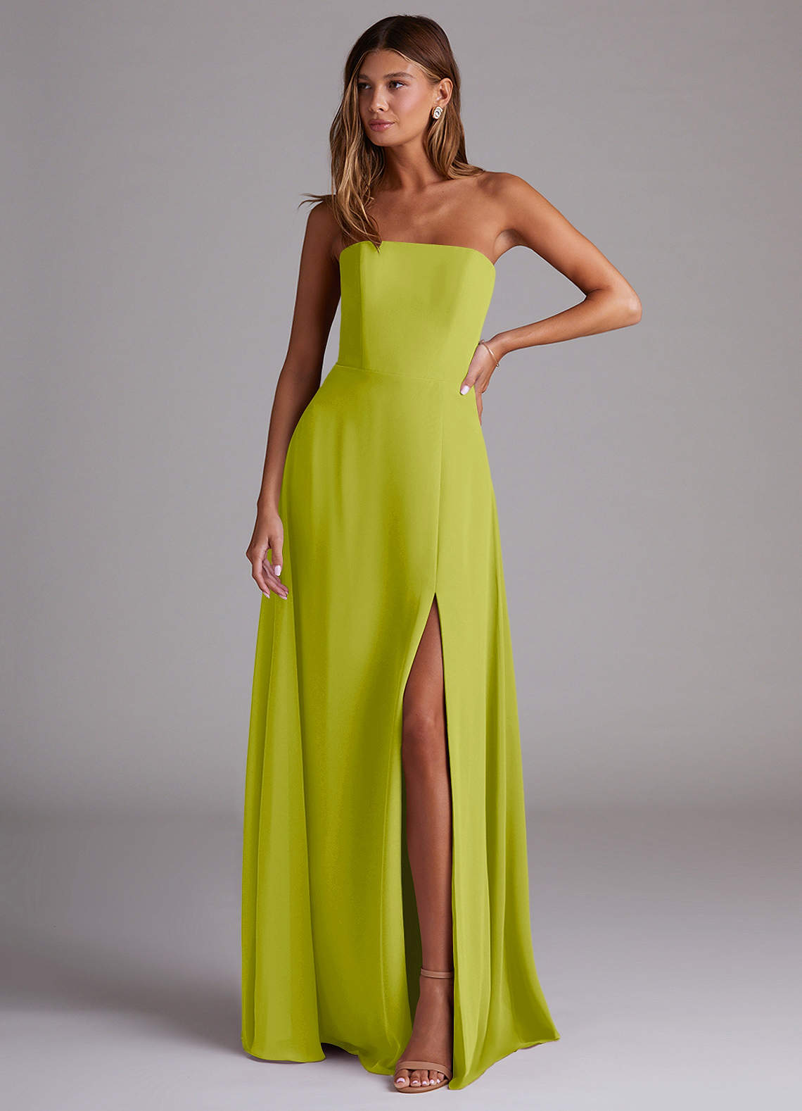 Vestido de Hierba De Limón de Gasa de Corte en A Convertible con Corte Lateral
