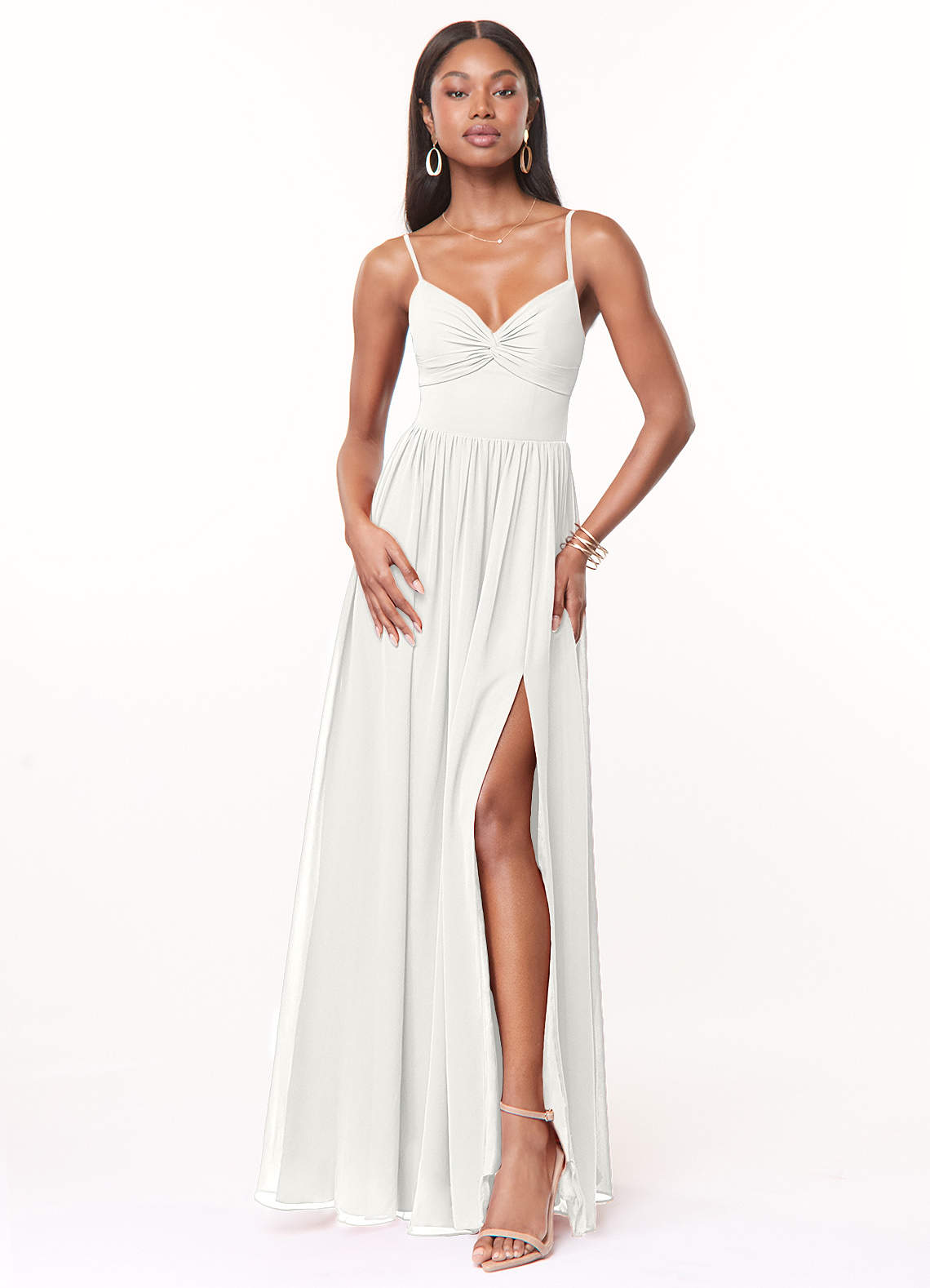 Vestido de Blanco de Gasa de Corte en A con Cuello en V plisado