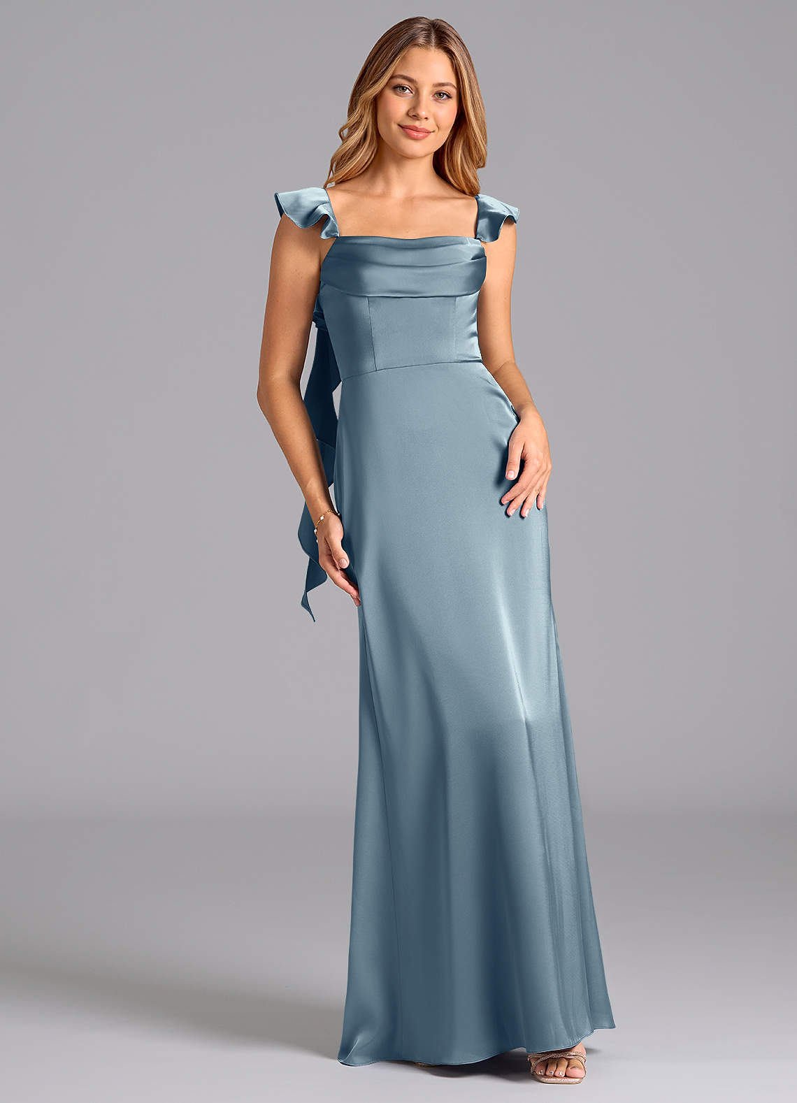 Vestido de Borgoña de Satén Elástico de Corte en A con Plisado