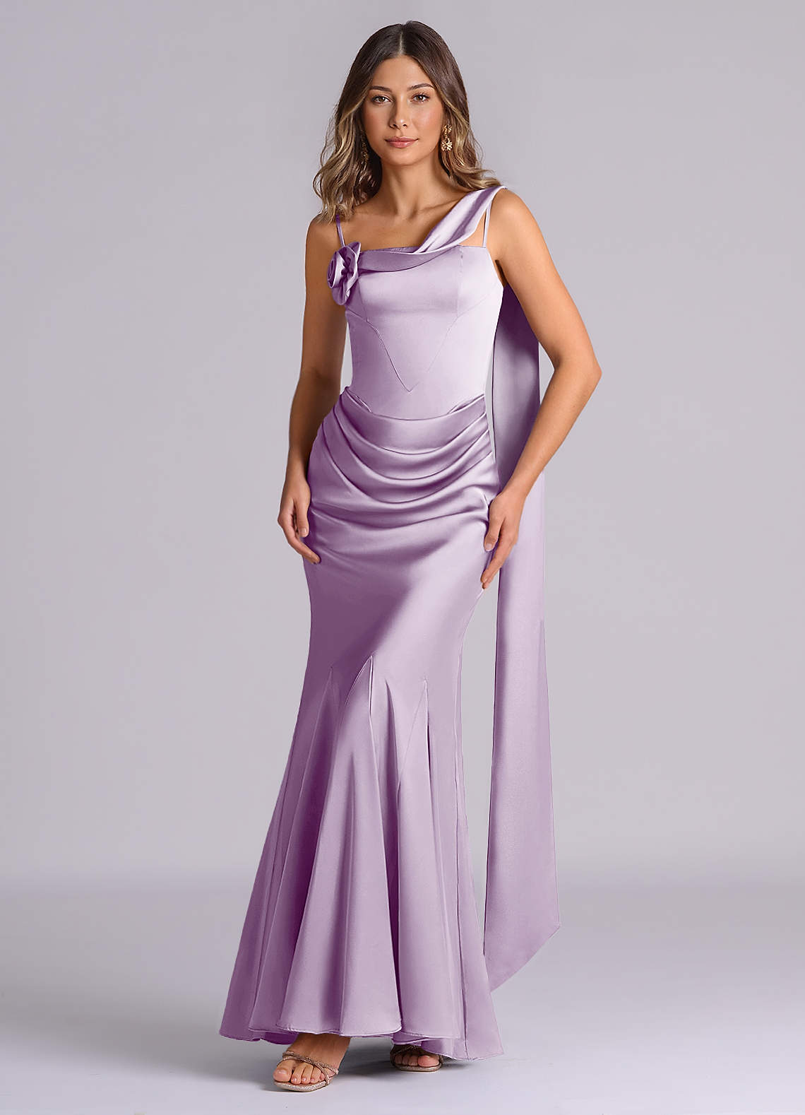 Vestido de Verde Oscuro de Satén Elástico de Corte Sirena con Plisado