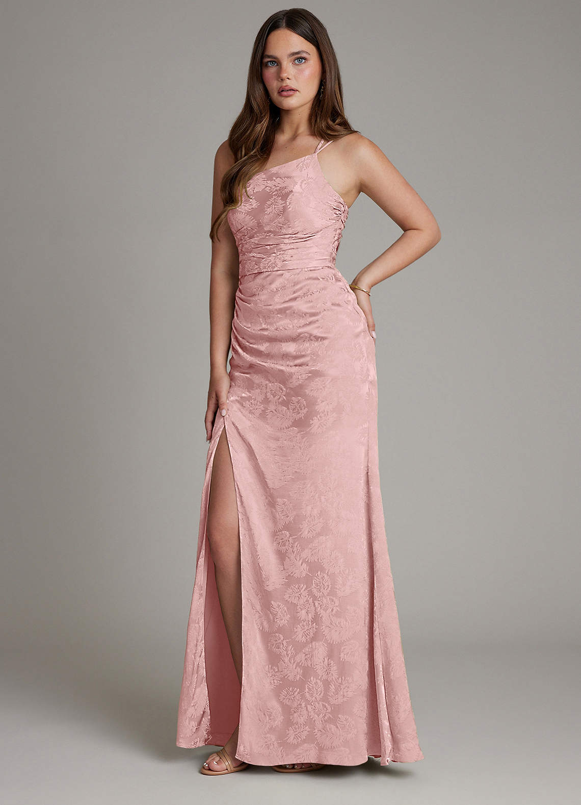 Vestido de Jacquard De Rosas de Jacquard Floral de Corte Recto con Hombro unilateral