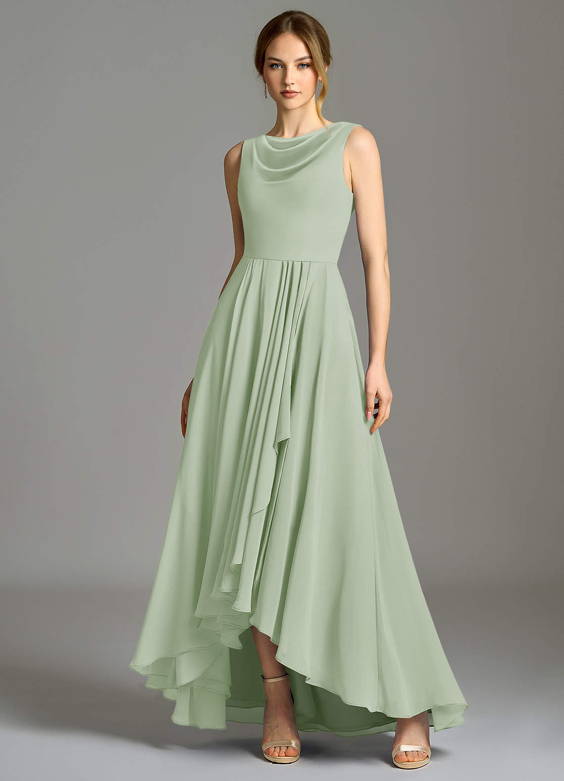 Vestido de Salvia Polvorienta de Gasa de Corte en A con Plisado