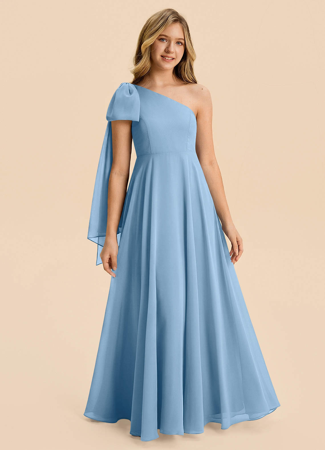 Vestido de Azul Acero de Gasa de Corte en A con Plisado