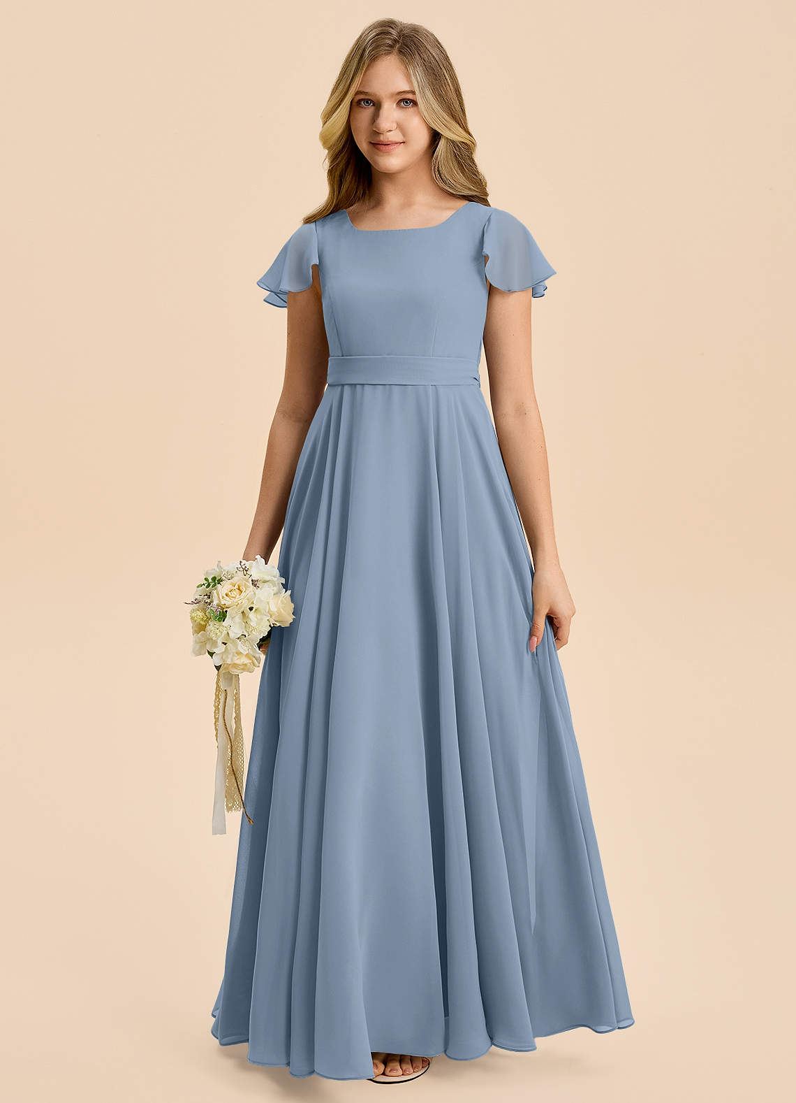 Vestido de Azul Polvoriento de Gasa de Corte en A con Plisado