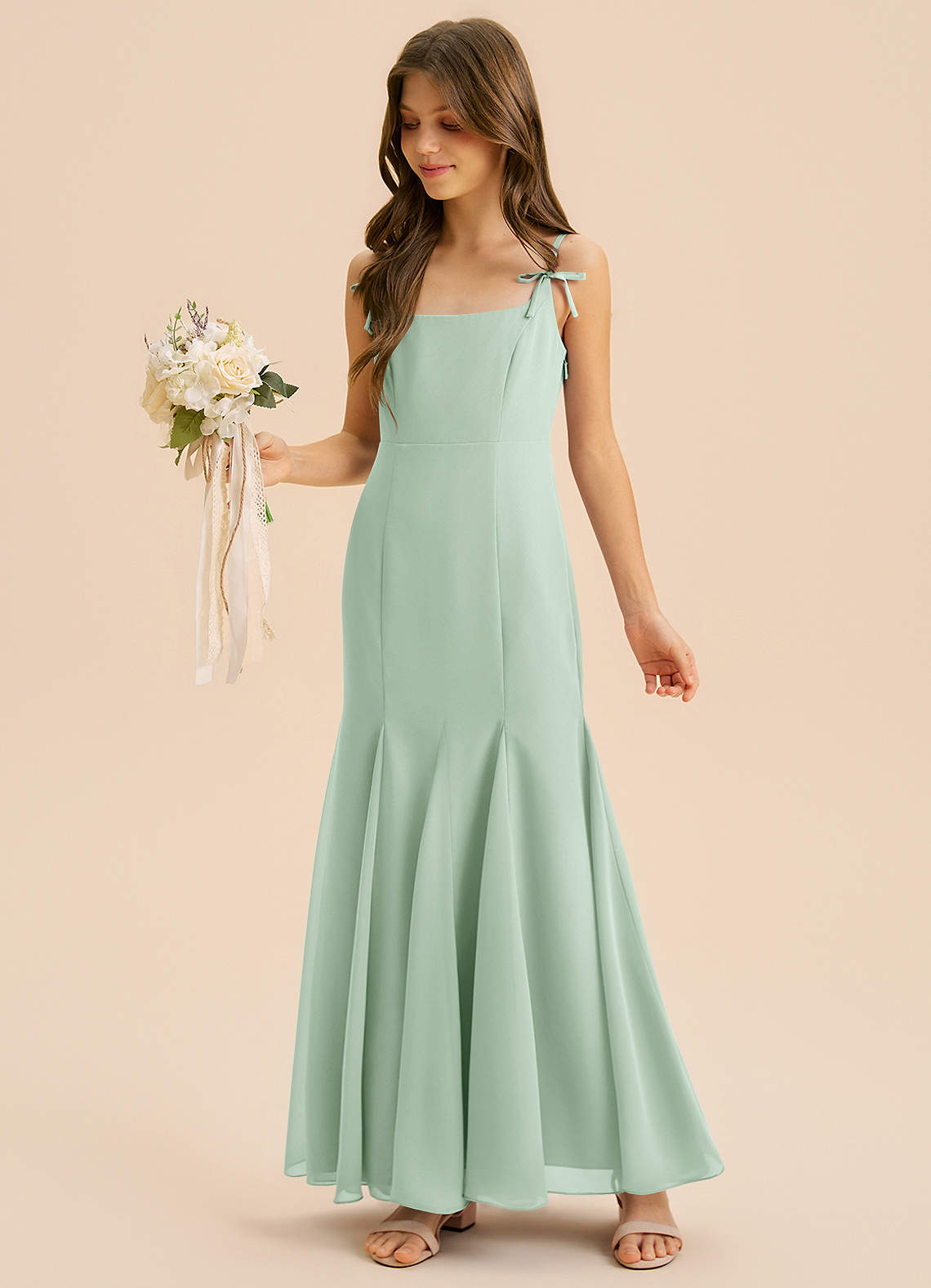Vestido de Agave de Gasa de Corte Sirena con Plisado