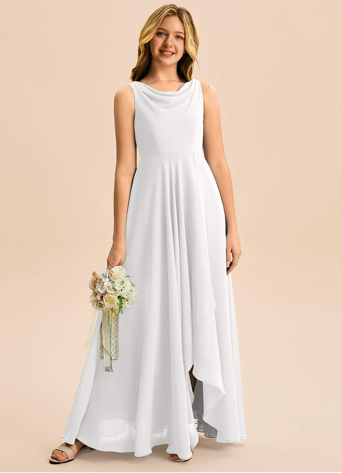 Vestido de Blanco de Gasa de Corte en A con Plisado