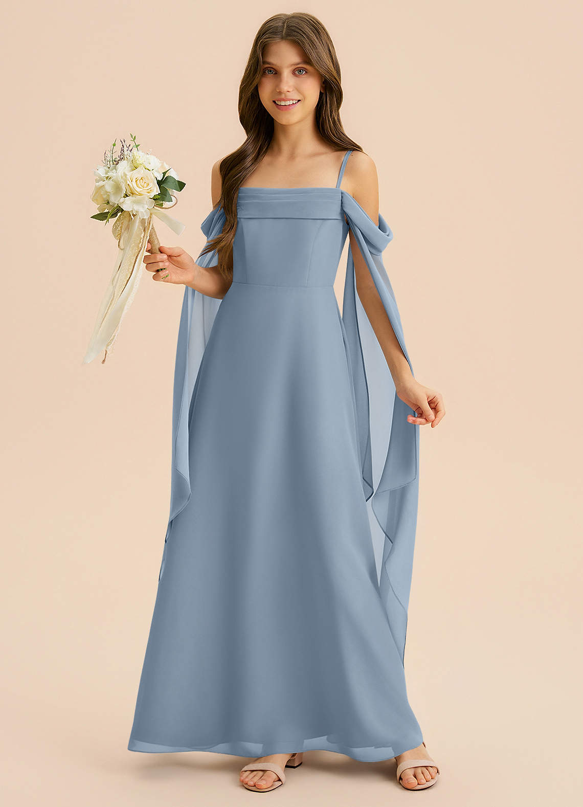 Vestido de Azul Polvoriento de Gasa de Corte en A con Plisado